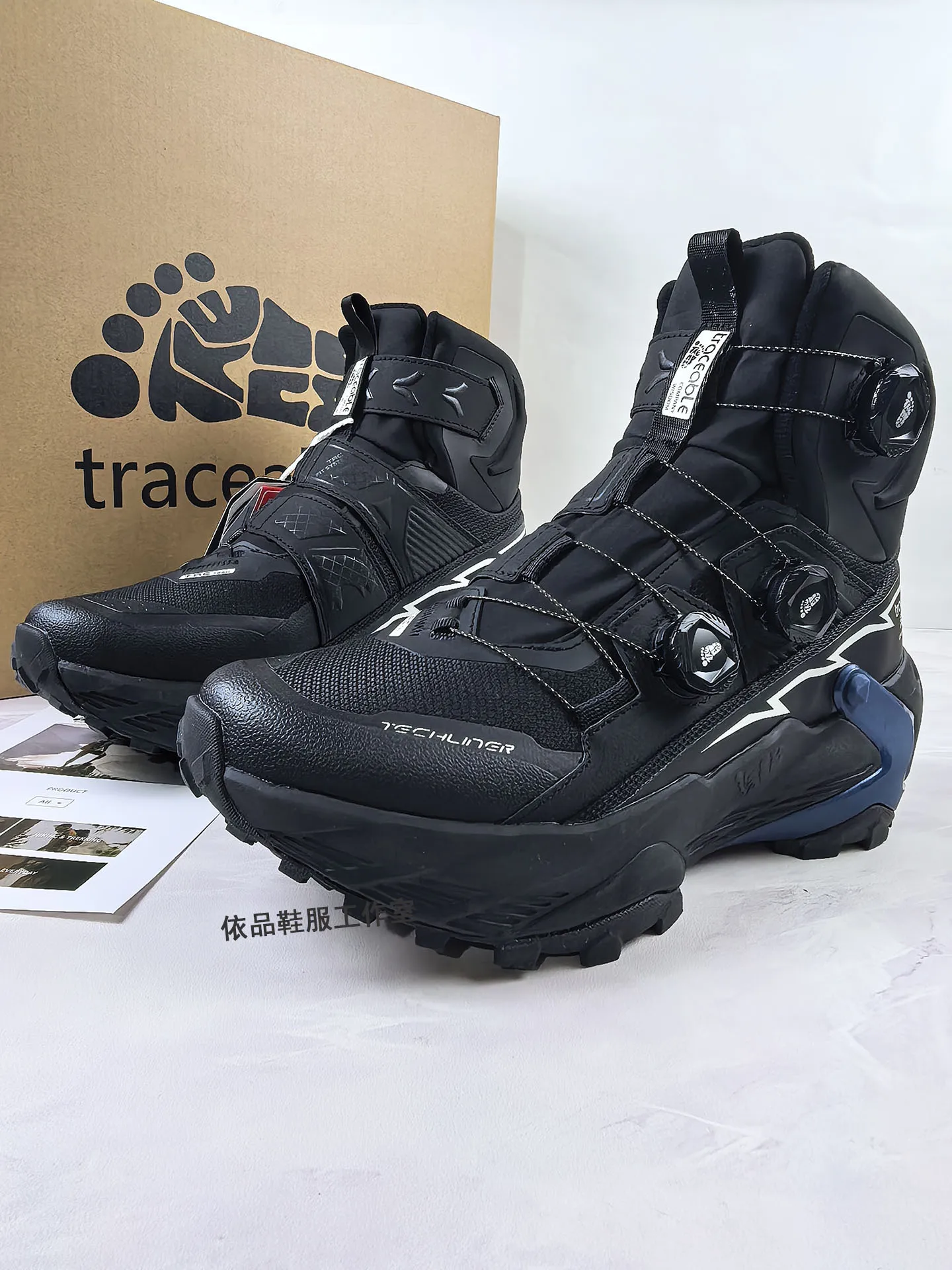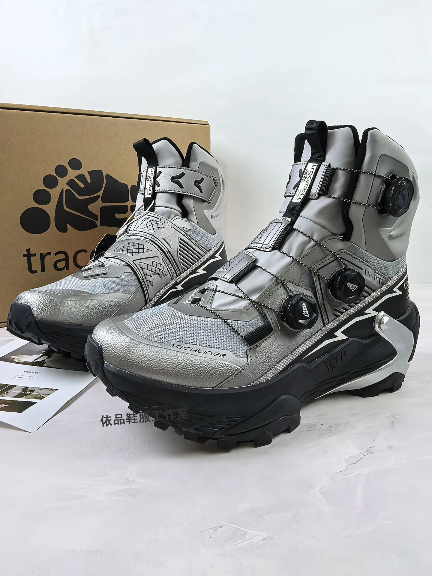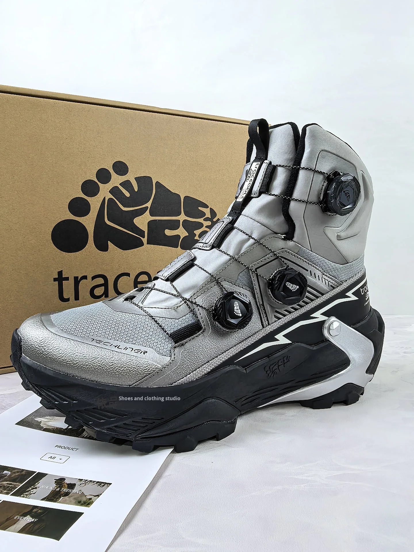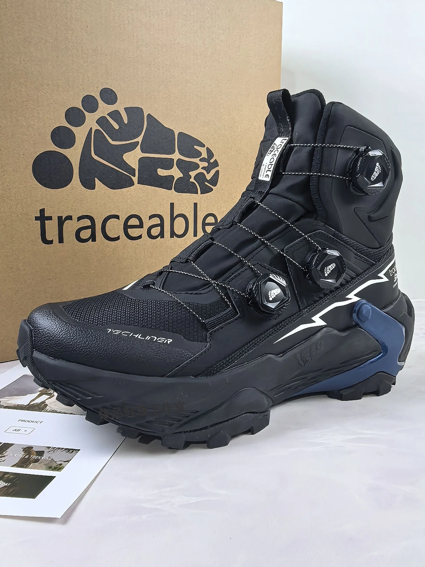Traceable Large Footprint Shock-Absorbing Non-Slip Unisex Hiking Shoes Wear-Resistant Outdoor High-Top Rotating Buckle Leather